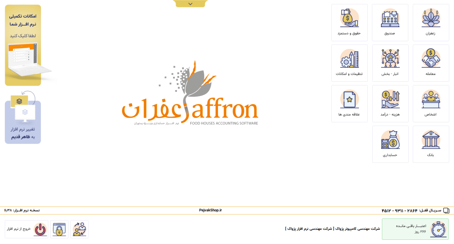 نرم افزار رستورانی زعفران استاندارد ، دارای همه قابلیت های لازم برای مدیریت یک مجموعه غذایی شامل ورود اطلاعات پایه ، ثبت فروش ها و صدور فیش و در نهایت اخذ انواع گزارش های آماری از فروش ها و دریافت ها ،موجودی ،حساب اعتباری ،حساب صندوق و ... می باشد